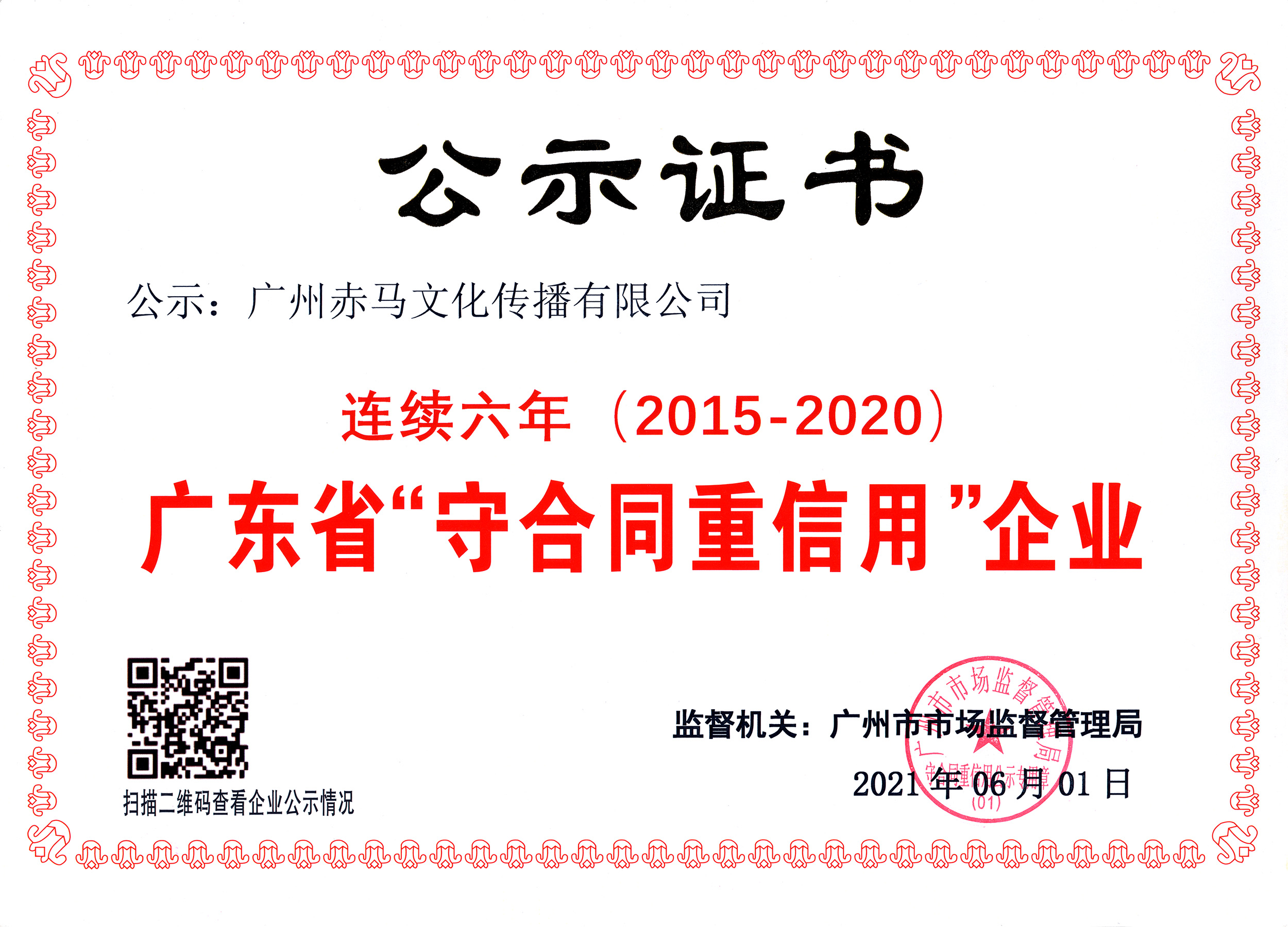2015-2020年度-廣東省守合同重信用企業(公示證書)媽遠